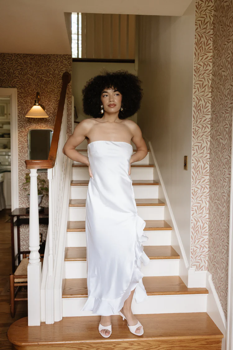 Looking for a versatile white dress that feels special but doesn’t break the bank? This strapless ruffle maxi offers modern simplicity with classic bridal vibes—perfect for rehearsal dinners or engagement parties at just $78. Style it your way and celebrate all those unforgettable moments.